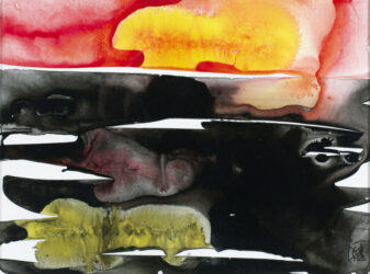 J’ai eu envie de traiter ce sujet d’une manière abstraite et avec la technique du « pouring »… peintures fluides, acrylique, sur papier japonais.