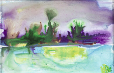 Ces petits paysages, créés avec des encres de couleurs, sont le pur produit de ma liberté de création. Je me suis amusée à jouer avec les couleurs…