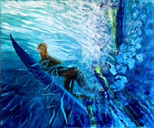 Je veux traduire la vitalité, l’exubérance, par le mouvement, une surfeuse en pleine action sur la lèvre de la vague, ou dans la paix, l’infini…