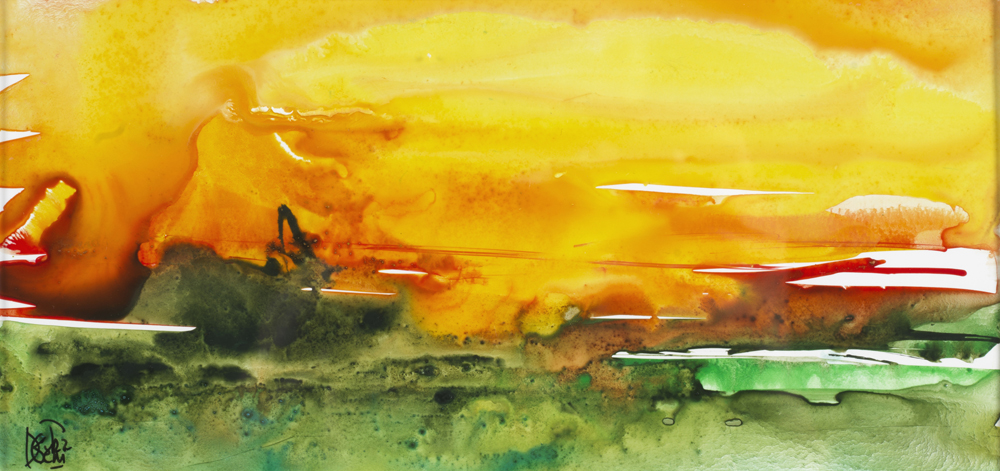 Ces petits paysages, créés avec des encres de couleurs, sont le pur produit de ma liberté de création. Je me suis amusée à jouer avec les couleurs…